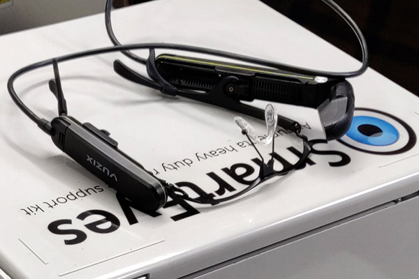 Every glass has a small camera, microphone, and speaker, along with a small CP (Command Processor), battery, and Wi-Fi radio. It’s a fully self-contained video streaming device. If I start our AR application, I could be live streaming right away. Right now, I am joining this skype call with my laptop, but I could also be wearing my glass so on your screen, you would see what the camera sees, which is what I see in front of myself. And that is a great way for the remote expert to give instructions on how to solve problems because they can see what you are seeing.